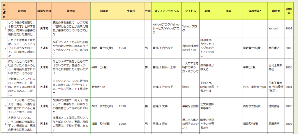 Here I’m using the free Shonagon Contemporary Japanese corpus to find results on 天才的.