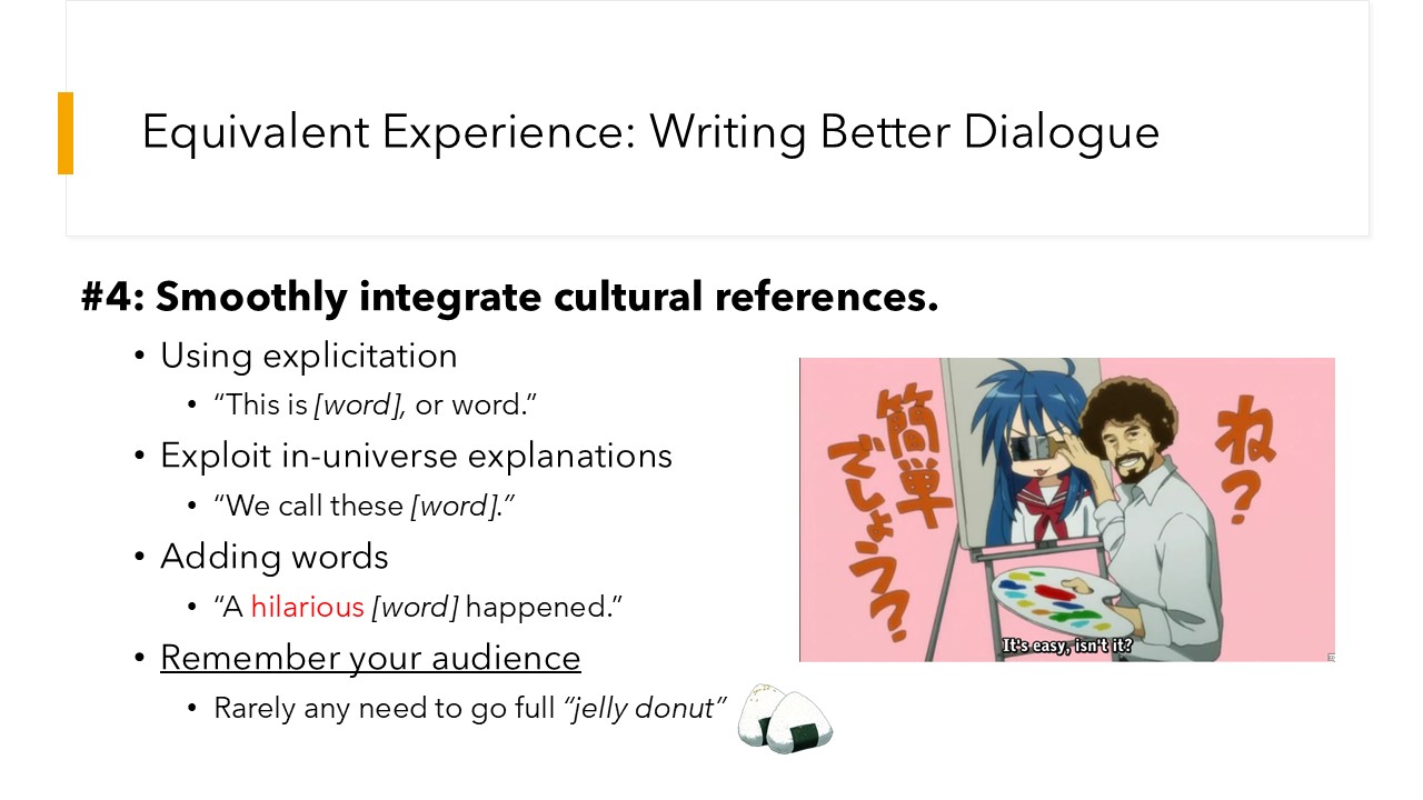 I love bringing my passion for applied linguistics and translation theory to classrooms, events, and conventions. Over the past decade, I’ve been a featured speaker at dozens of events around the United States, including Anime Expo, the Game Developer’s Conference (GDC), the American Translators Association conference, and the International Japanese-English Translation conference.